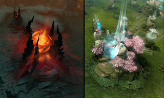 Tujuan utama dalam bermain DOTA 2 yaitu adalah untuk menghancurkan ancient musuh. Yang manakah ancient itu? ancient itu terletak dekat dengan fountain. Ancient adalah seperti gambar berikut (kiri: dire, kanan: radiant)