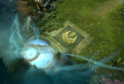 Roshan‘s pit in the river is slightly closer to the Radiant bank, near the top rune spawn loation, while the Dire bank curves around the pit. Before 7.00 revamp, Roshan was on the Dire side, near the bottom rune spawn location, giving Radiant an approach advantage.